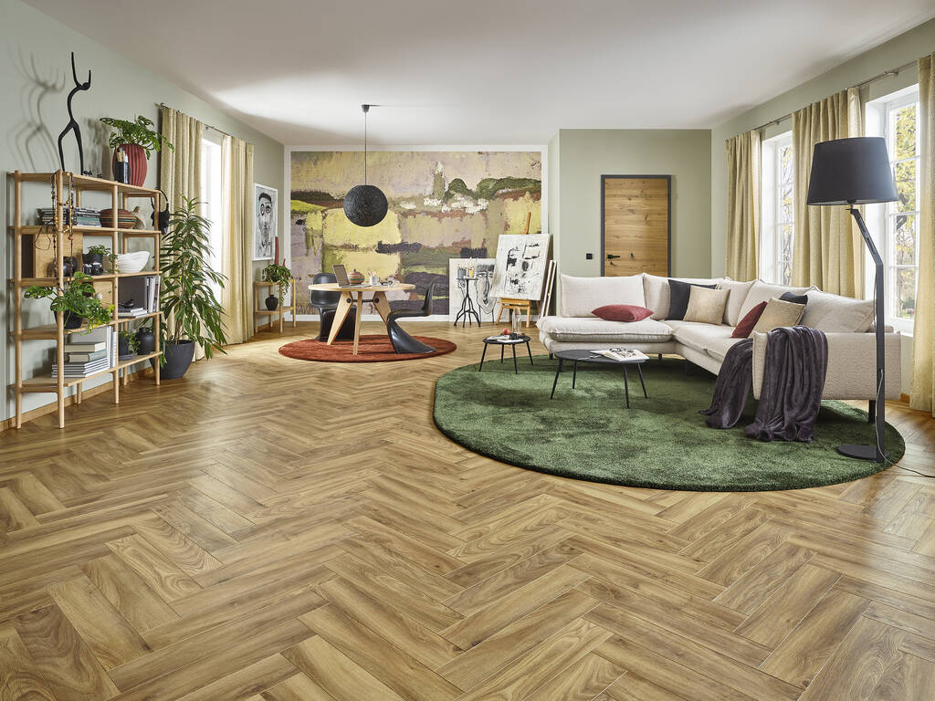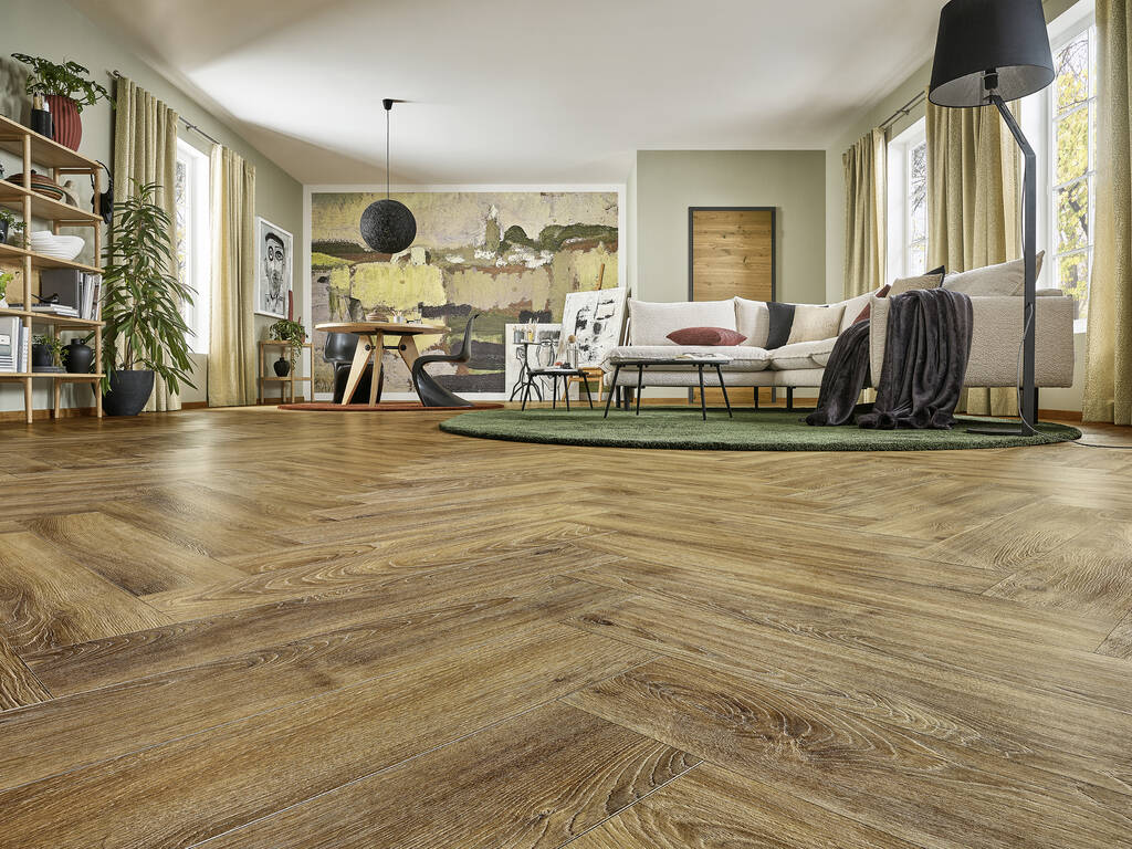 Panele Podłogowe w jodełkę Joka 632 HudsonBay V4 Oak Tradition AC4/8mm Herringbone